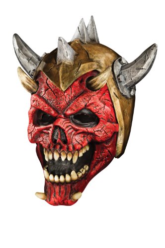 Lead an army of fierce demon warriors into battle- or at least look the part. This red horned skull mask, with horned helmet attached, is perfect for those occasions requiring a scary fa?ade. Rubie's brings fun to dress-up with costumes and accessories kids play with all year long.Features include: •Includes one red horned demon warrior mask•One size fits most teens and older•Lightweight foam latex is easy to wear•Perfect for Halloween and other occasions requiring a scary fa?ade•Accessories are the touch that completes the look