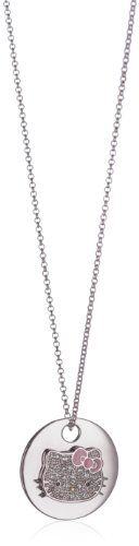 Hello Kitty White Sapphire and Diamond Disk Sterling Silver Pendant Necklace , 18" Product Description: