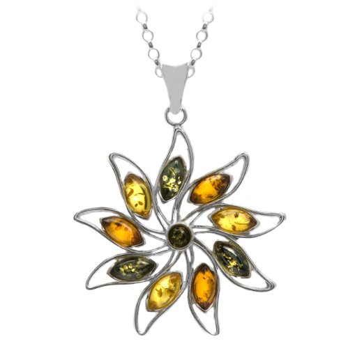 Sterling Silver Multi-Color Amber Star Pendant Necklace , 18" Product Description: