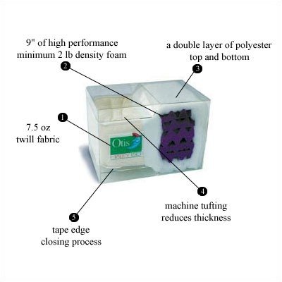 11H52 Size: Twin Features: -For use on platform beds only.-8'' Thickness.-Comfort level: highly supportive / extra firm.-Durability..10-12+ years, designed to resist changes in support for years.-Mattress goes best with platform, day, or bunk beds.-7.5 Oz. twill fabric provides proper strength to hold the tuft in the mattress.-9'' Of high performance minimum 2.0 pound density foam provides the ability to keep the mattress looking and feeling good.-Machine tufting reduces the thickness of the mattress to lock in long mattress life. Color/Finish: -Double layer of polyester top and bottom gives the mattress a clean finished look.-Tape edge closing process ensures proper fit and finish of the mattress cover. Dimensions: -Overall dimensions twin: 8'' H x 39'' W x 75'' D.-Overall dimensions full: 8'' H x 54'' W x 75'' D.-Overall dimensions queen: 8'' H x 60'' W x 80'' D.-Overall dimensions eastern king: 8'' H x 76'' W X 80'' D.-Overall dimensions california king: 8'' H x 72'' W x 84'' D.