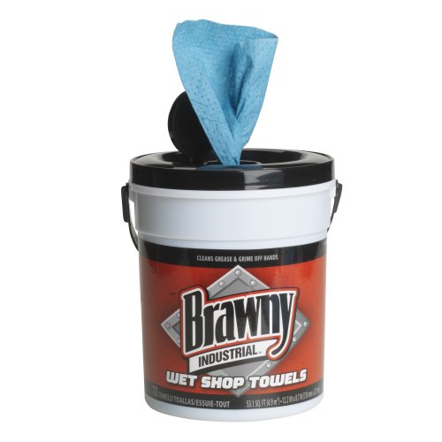 Brawny industrial wet shop towels with cloth-like softness allow you to easily wipe and clean greasy and grimy hands on the spot. Soft, durable and strong with no gritty residue and clean, fresh scent make these a perfect clean-up solution and portable pail with one at a time dispensing and added wiper protection helps reduce waste and control costs.